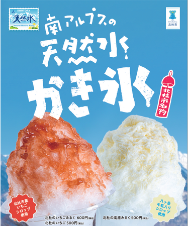 ~サントリー天然水で製氷したかき氷に、オリジナルシロップ「北杜のいちご」「北杜のいちごみるく」「北杜の高原みるく」の3種類展開、酒蔵「七賢」では糀と米だけで作った限定コラボ商品を~