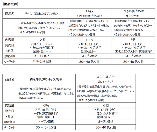 森永製菓株式会社(東京都港区芝、代表取締役社長:太田栄二郎)は、森永乳業株式会社(東京都港区芝、代表取締役社長:大貫陽一)の人気商品「森永の焼プリン」「森永牛乳プリン」とコラボレーションした菓子を 7 月 18 日(火)より期間限定で発売いたします。