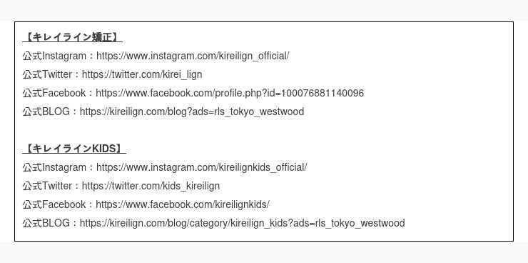 『キレイライン矯正』『キレイラインKIDS』公式SNS