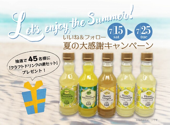 エントリーいただいたフォロワーの中から抽選で45名様に人気のクラフトドリンクの素5本セットをプレゼントいたします。夏の暑さを爽快にしてくれる、クラフトドリンクの素。炭酸で割って、すっきり爽快な喉ごしと、あふれる果汁感をお楽しみいただけます。お酒の割材としても、かき氷のシロップとしてもおすすめ!暑~い夏にぴったり!