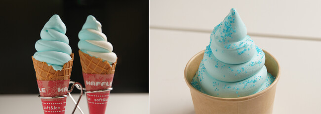 ブルーが爽やかな季節のソフトクリームは「ラムネ」味。
