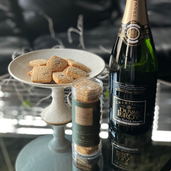 そのため、環境に配慮したものづくりを続けるバッグブランドFUMIKODA、“動物性油脂の特長を活かしたおいしさ”を創りだしたプラントベース向け食用油脂ブランド「botanova」(※2)を展開するミヨシ油脂、神戸発祥のパティスリー「a la campagne」を展開するハット・トリックの3社は、お客様に味の満足感を提供するとともに、楽しみながら食の選択肢を広げていただきたいという想いで、大人のヴィーガンサブレ「Veble」(ヴィブレー)を共同開発しました。
