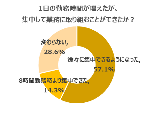 アンケートの回答から、実際に週休3日制を実施した社員全員が満足しているという結果となりました。また、周囲からも週休3日制を導入していることについて「先進的だ」「うらやましい」「驚いた」といった声が寄せられており、全員が今後も継続したいという意思を示しています。