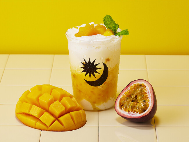 台湾で夏の定番となったタピオカ入りマンゴーベースドリンクの「楊枝甘露(ヨンジーガムロ)」に杏仁豆腐とミルクを合わせ、ホイップ、アップルマンゴーダイス、ミントをトッピング。
