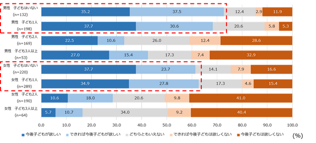 【図4】性別×子どもの人数別 今後子どもが欲しいか