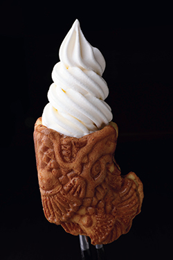 名古屋名物「しゃちほこ」をかたどったスイーツはSNS映えもばっちり!冷たいソフトクリームとあんこの相性もぴったりでクセになるおいしさ。