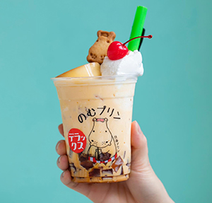 阿蘇小国のジャージー牛乳を使用し、ほろ苦いカラメルソースがアクセントのプリンを、ふんわりパンケーキ風のどら焼きで、カスタードクリームとあわせてサンドした新感覚のひんやりスイーツ。