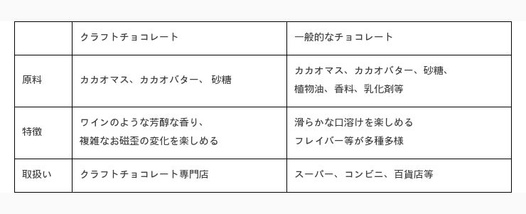 クラフトチョコレートの原材料は、カカオマス、カカオバター、 砂糖のみ。
