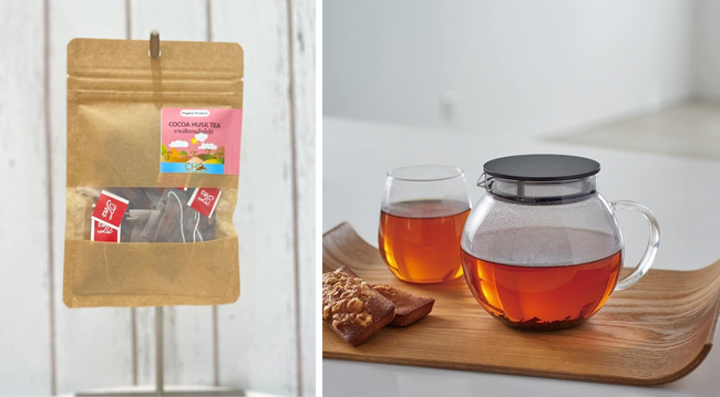 チョコレート製品の製造工程で使わないカカオの殻を使用することで注目されているサスティナブルな商品です!