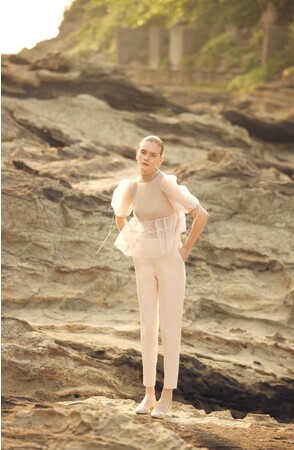 洗練された1つ1つのラインから作り出される構築的なシルエットで魅了。