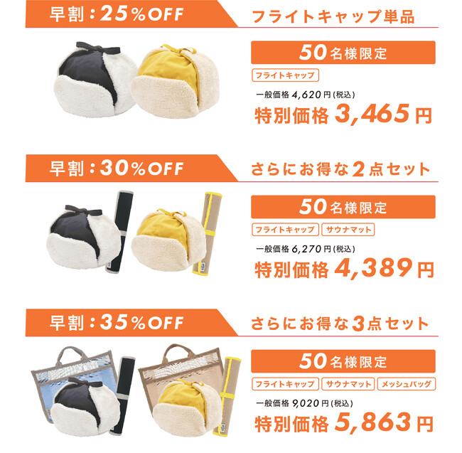 ・セット内容:フライトキャップ、サウナマット、メッシュバッグ