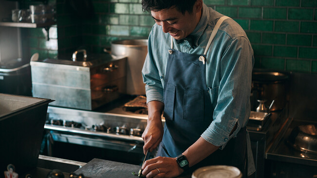 1982年、東京・深川出身。『O2』オーナーシェフ。東京の名店『トゥーランドット臥龍居』で約15年間腕を磨き、2018年に清澄白河に『O2』を開く。基本を押さえつつ、四季折々の国産の材料や香りのよいハーブ、柑橘などを使った新感覚の組み合わせや味付けで話題に。野菜ソムリエの資格ももつ。