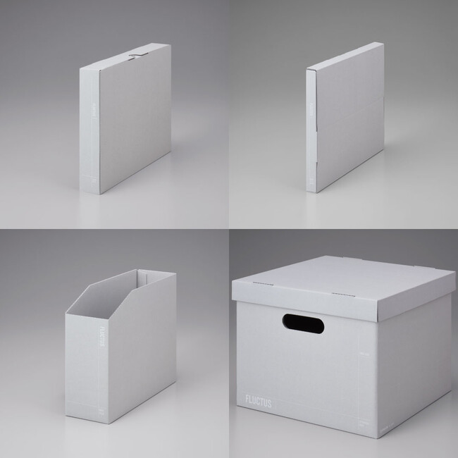 『FLUCTUS(フラクタス)』(以下、フラクタス)は、従来の紙製収納用品にあった「カットした面が処理がされていない」「高級感がない」といった不満点に着目して開発した紙製収納シリーズです。