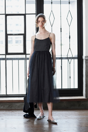Bilitis dix septans(ビリティス・ディセッタン)のアイコンともいえるチュールキャミソールワンピースをドット柄に別注した甘さが際立つスペシャルドレス。