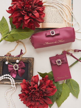 ・パールビジュー合皮リボンロングポーチ(¥3,950)
