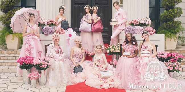 ブランドデビュー10周年を記念したヴィジュアルを公開。ブランドの象徴である、リボンとお花で装飾した華やかなピンクのドレスまとった10人のモデルを起用しました。
