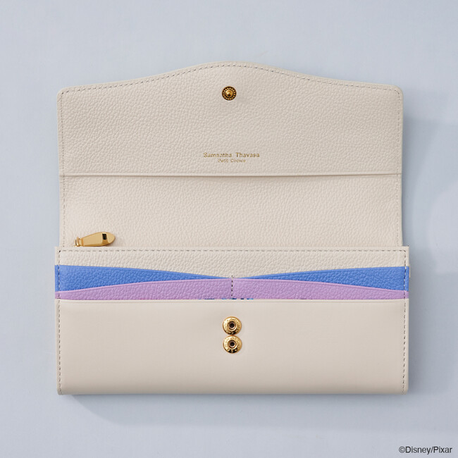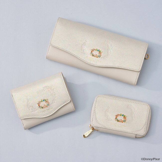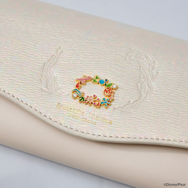 ストーリーの舞台であるエレメント・シティをイメージさせる、キラキラと多色に輝くオーロラ加工を施した素材を使用した小物シリーズ。シンプルながら、お財布を動かす度に楽しい気分になるデザイン。