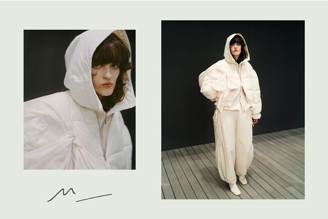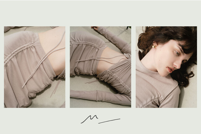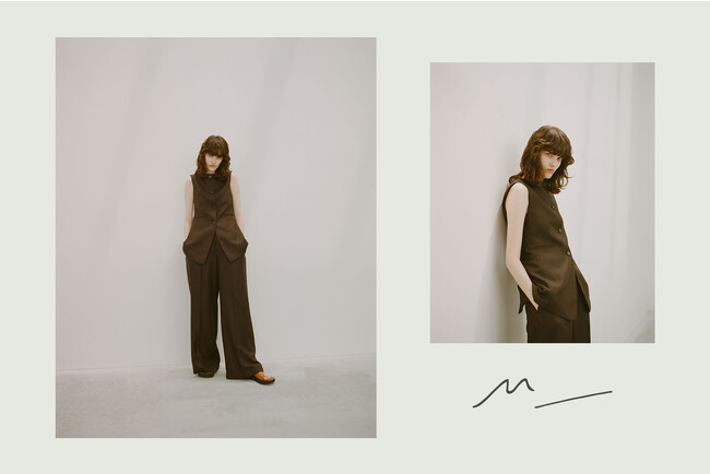M_ 2023 Autumn Collectionでは、身体に柔らかく添うシルエット、飽きの来ないタイムレスにご愛用いただけるベーシックな逸品を豊富に揃えたオーガニックコットンシリーズをはじめ、スタイリングによって表情を変え、様々なシーンで楽しめる、スーツライクな綾目が美しいキャミソールドレスやベストなどモードなアイテムを揃えたリサイクルマテリアルシリーズを展開いたします。