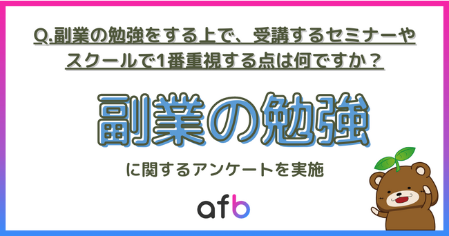【質問1:副業の勉強をする上で、受講するセミナーやスクールで1番重視する点は何ですか?】