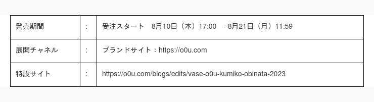 特設ページ:https://o0u.com/blogs/edits/vase-o0u-kumiko-obinata-2023