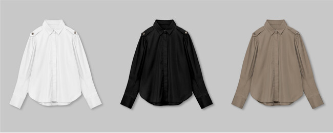 120番手双糸という非常に細い糸を使用し、高密に織り上げた上質な綿のシャツ地を使用しており、美しい光沢感とシワになりづらさが魅力のアイテムです。肩のエポレットや、ふわっとひろがるボリューム袖が、顔周りを華やかに、華奢に見せてくれます。きちんと感のある襟や長めのカフスで上品にまとめました。