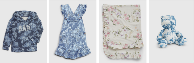 本コラボコレクションは、ニュートラルなトーン、フローラルプリント、遊び心に溢れたテクスチャー、そしてGapのシグネチャーであるアーチロゴにロマンティックでノスタルジックなひねりを加えたファブリックを取り入れ、クラシックなデニム、パステルカラー、Gapロゴに新鮮なテイストを加えた全76型がラインナップします。また、家族でお揃いのコーディネートを楽しめる、ウィメンズ、メンズ、キッズ、ベビーで共通のスタイルとプリントも登場します。価格帯は2,990円~25,900円で、デニム、スカート、ドレス、パンツ、フーディー、アウターウェア、ボタンダウン、バッグ、キャップなど幅広いラインナップで展開します。