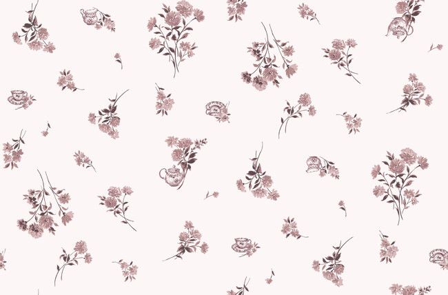 秋のティータイムをイメージして、フラワープリントにティーカップやポットなどが隠れたオリジナルプリント生地です。秋らしい落ち着いたカラーリングで程よい甘さのフラワープリントに仕上げました。