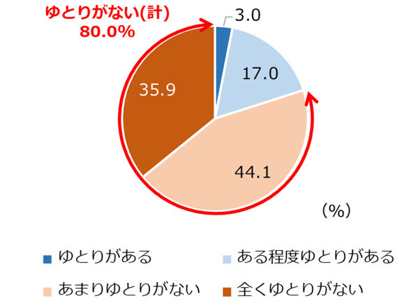 8割が経済的にゆとりがないと感じており、4人に1人が「貯金がない」と回答。学びなおしの必要性を感じる人は6割以上。理由は「収入を増やすため」がトップ