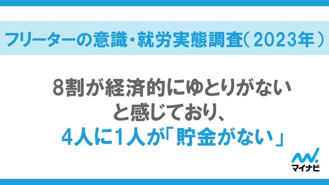 今回の調査では、フリーターとして働く人の8割が経済的にゆとりがないと考えており、ゆとりがない人ほど本来希望していたキャリアを歩めていないという実態が明らかになりました。