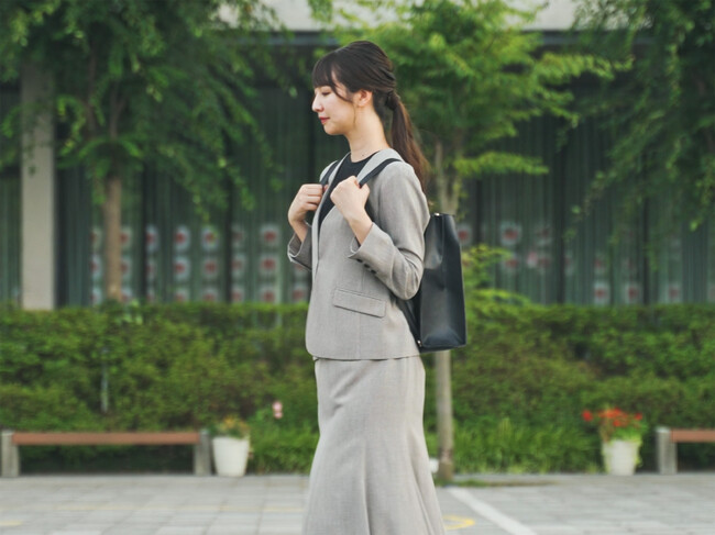 仕事でPCを持ち運ぶのに便利なリュックですが、カジュアルな印象になりすぎて、お仕事のシーンやファッションに合わないことも。そんな働く女性の悩みの声に応え、きちんとしたシーンではトートバッグとして、移動中はPCなど重い荷物を快適に持ち運べるリュックとして、場面に応じて使い分け可能な「セオルー busy」を開発しました。