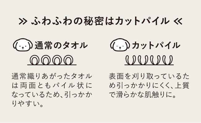 マイクロファイバーはタオルの表面をカット処理しているため、ペットの毛に引っかかりにくく肌触りも滑らか。