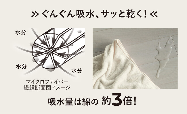 綿の約3倍の吸水力を誇るマイクロファイバー製