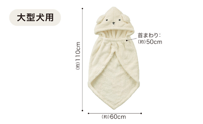 大型犬に対応した大きめサイズで、シャンプー後や雨の日のお散歩後に被せるだけ。