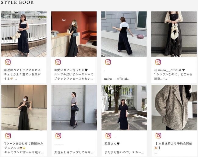 このような商品ラインアップの拡充に加え、「nairo department」はアンバサダーやファンが投稿したUGCを活用した「STYLE BOOK」や「PICK UP SNAP」などコーディネートメディアとしての機能を追加いたしました。