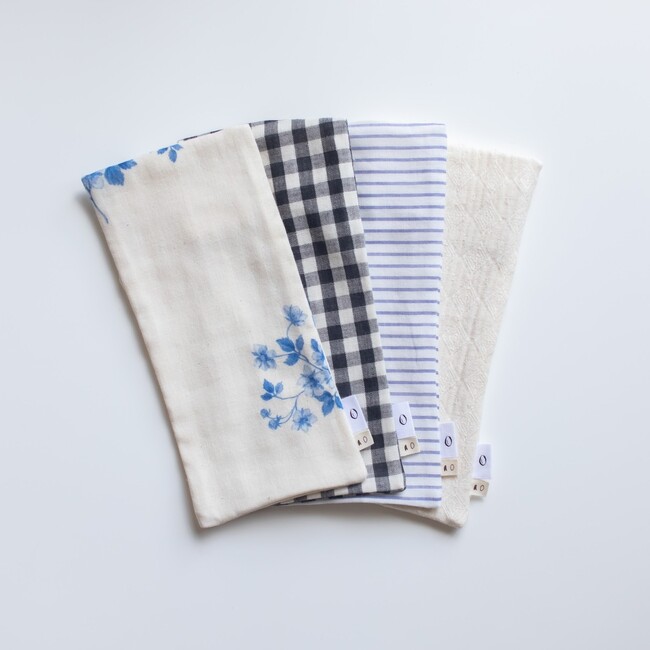 色展開:イチゴ(ブルー)、ジャガード(オフホワイト)、チェック(ブラック×ホワイト)、ストライプ(ホワイト×ブルー)