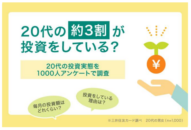 アンケートの結果、20代の約3割が投資をしていることがわかりました。