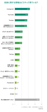 20代は、投資の知識をどのように得ているのか聞いてみたところ、SNSがTOP3を独占。1位は「Instagram」、2位は「YouTube」、3位は「Twitter」。今の時代を色濃く反映した結果になりました。