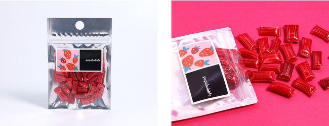 いちご飴をイメージした、パパブブレならではのスペシャルな1本。いちごの濃縮果汁を使用した大きないちごバブレッツグミに、パリッと薄付けのいちごフレーバーキャンディをコーティングしています。