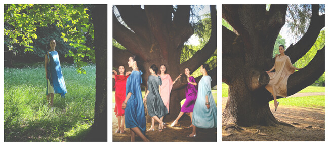 美容の視点から生まれたブランドコンセプトは、こだわり抜いて選ばれたシルク素材にも反映されています。アパレル最大の課題である循環消費への取り組みとしても、シルクのポテンシャルを考慮。エシカル(ethical)ドレスブランドとしての確立を目指し、環境への配慮も「美しさのかたち」と考えています。ドレスはそれぞれ数回の色染めが可能なため、染める度に新品を手にしたかのような高揚感を得られることも、着る人の幸福感を高めるポジティブな心理作用として捉えています。