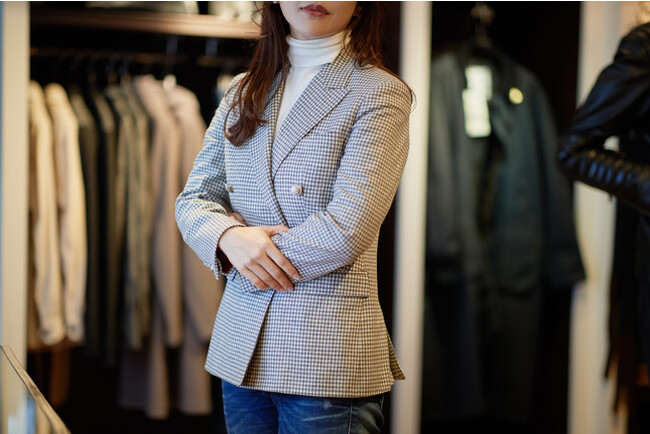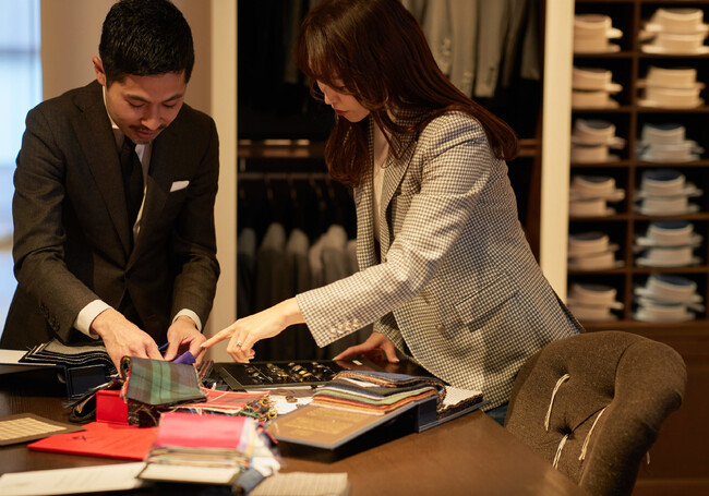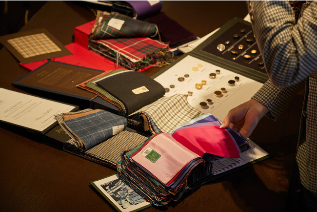 常時1,000種類以上ある生地バンチの中からこだわりやニーズにあった生地を選び、お好みに合わせてシルエットなどをアジャストできるので、既製品にはないエッセンスを取り入れられるのが魅力です。