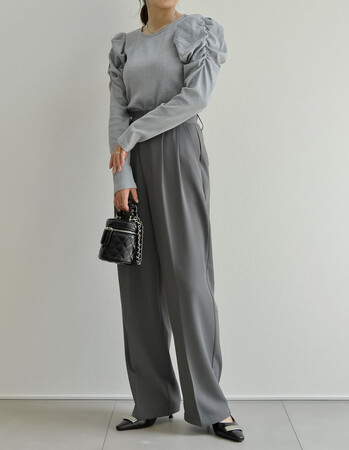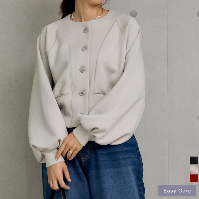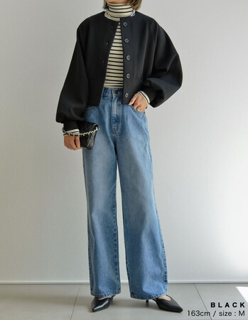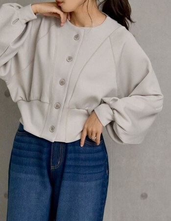全体的に丸みのあるシルエットかつ、ショート丈でバランス良く着こなせます。