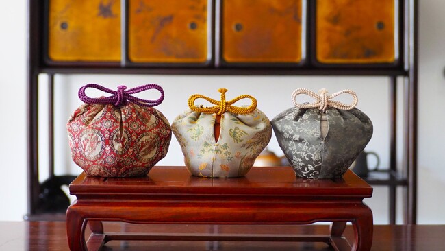 日本の土と技を使って作られた急須を、茶道で使われる仕覆(布袋)と、漆器の箱と組み合わせた「小茶箱」は、日本の茶文化を中国茶ユーザー向けにアレンジした、新しい茶道具セットです。