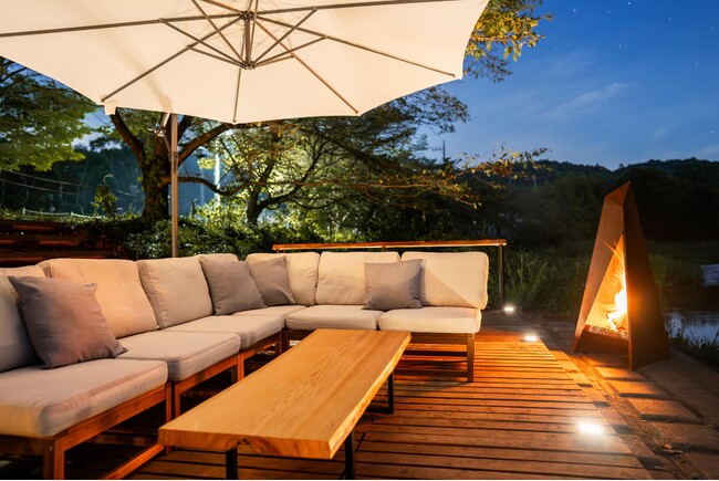 コモリバは、一級河川・都幾川を目の前に望む全12室の空間でグランピング・アウトドアサウナ・BBQ等が楽しめるアウトドアリゾートです。涼しくなった秋の夜に、川沿いでお酒をたしなむエリアを複数ご用意。お好きな場所で自分たちだけの時間をゆったりお過ごしいただけます。