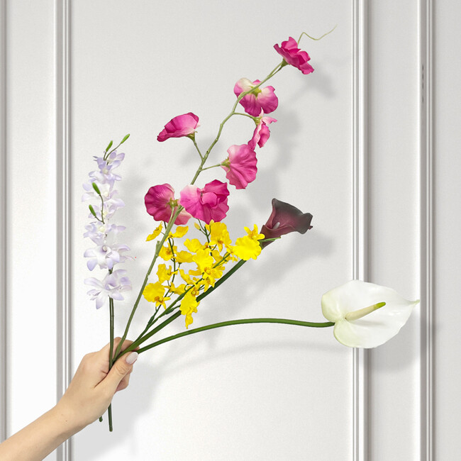 今季トレンドの色鮮やかなブーケがウェルカムスペースを一層華やかに演出してくれます。生花のようなアーティフィシャルフラワーを使用しています。