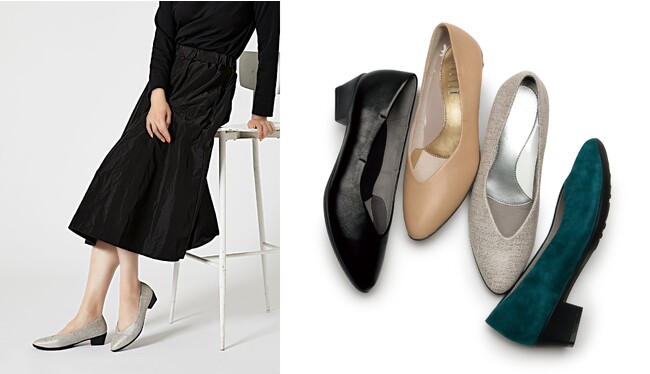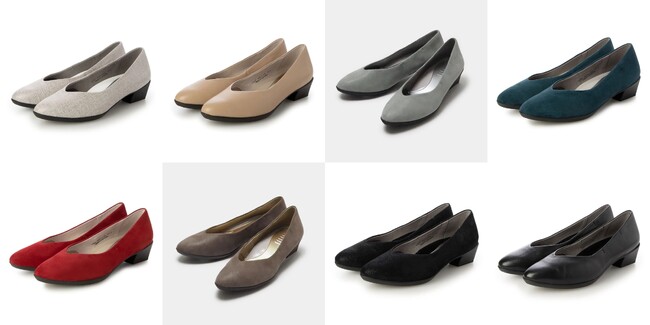 2023年秋冬の新作は、パンプニーカーの履き心地の良さはそのままに、Vカットデザインを甲部分に施し、足がより美しくみえるシルエットにこだわりました。また着用シーンやスタイリングに合わせて選んでいただきやすいよう、汎用性の高いベーシックカラーから、今期のトレンドカラーまで揃う全8色と幅広いカラー展開でご用意しています。