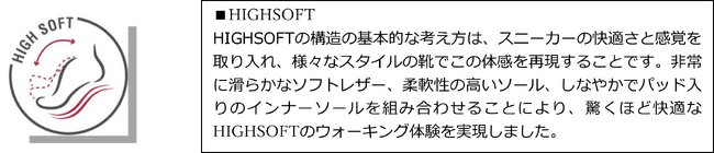 High Soft テクノロジーの特徴である柔らかなレザーと柔軟なアウトソールの組み合わせで心地の良いフィット感を得られます。