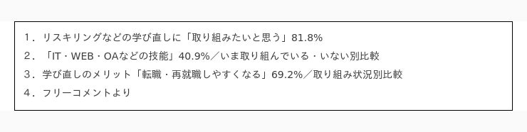 1.リスキリングなどの学び直しに「取り組みたいと思う」81.8%