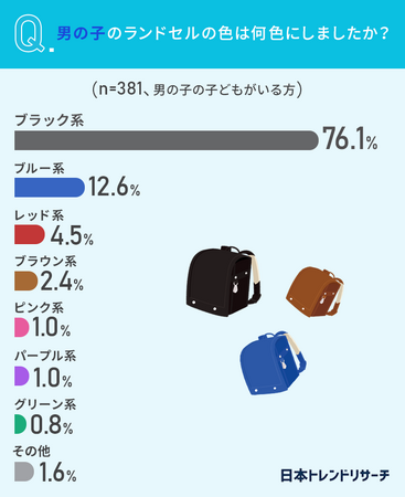 76.1%と、7割以上の方が「ブラック系」のランドセルを購入したと答えています。