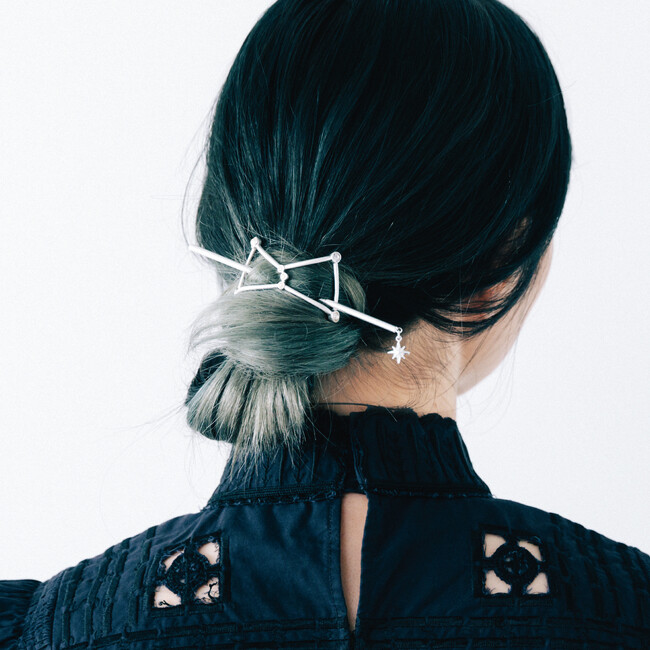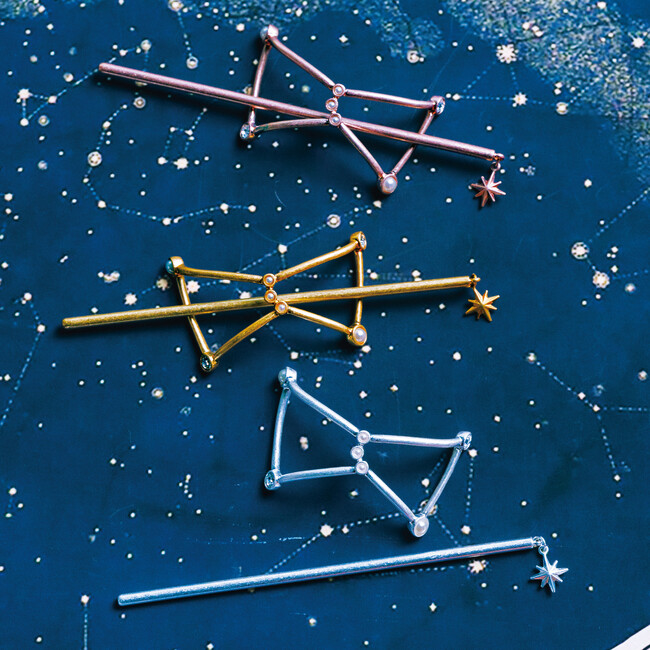 魔法のほうきで夜空を駆ける魔法少女。そのまわりに瞬く星々の、星座をモチーフにしたマジェステです。星部分には輝くビジューとパール風ストーンがあしらわれ、繊細な星のきらめきを表現しています。