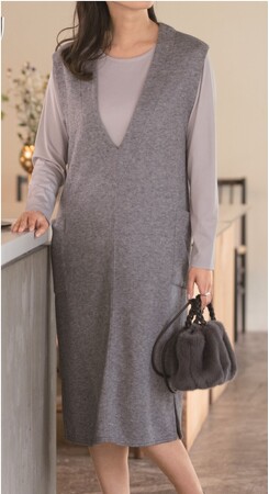 ジャンスカとプルオーバーのセットを紹介します。トレンドの深いVネックが特徴のジャンスカとシンプルな